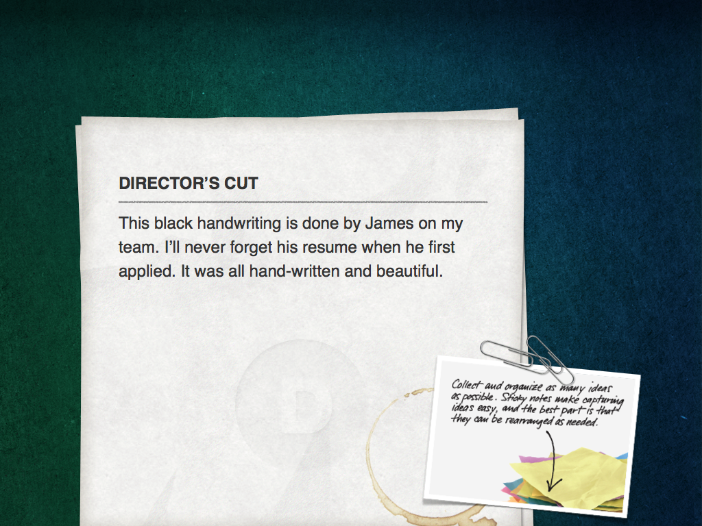 So hopefully, all the ideas you just generated give you some great creative choices to sift through.