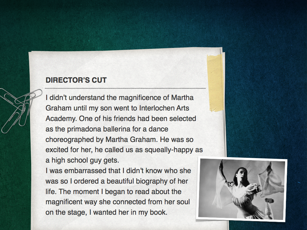 Graham challenged the conventions of dance and overcame every obstacle so she could present new ideas. Some loved her, and some reviled her, but she persisted in overcoming her fears to express the feelings in her soul. Her commitment to expressing her feelings transformed dance forever.
