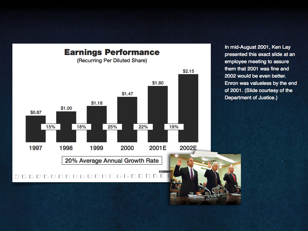 Presentations should be used as vehicles for good, not evil—they are very powerful tools that can easily persuade. One glance at the hundreds of slides used as evidence in the Enron trial proves that presentations can play an obvious role in the perpetration of lies.